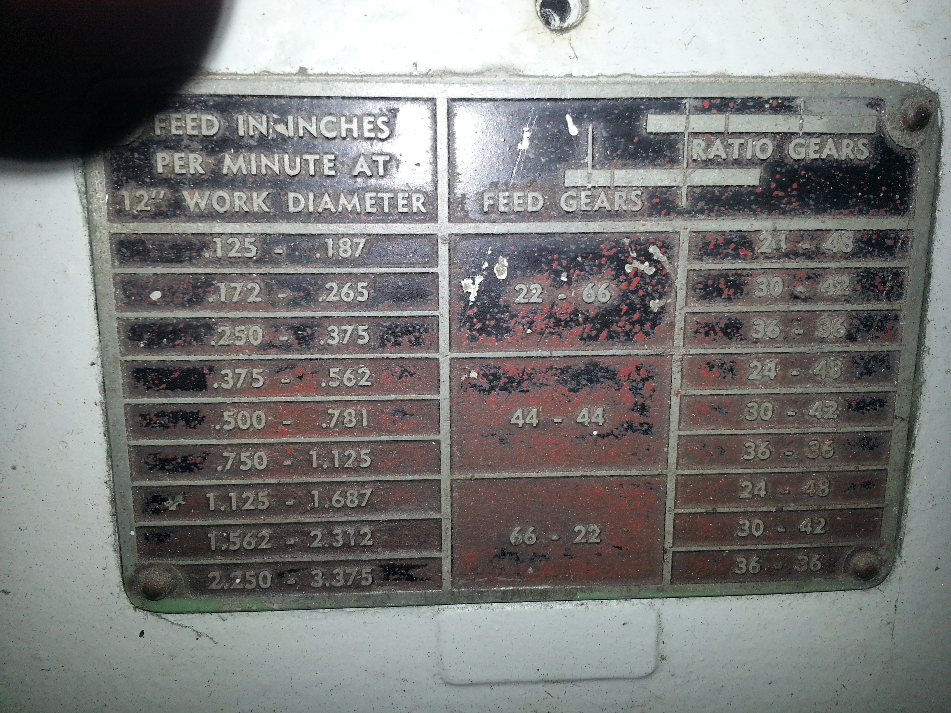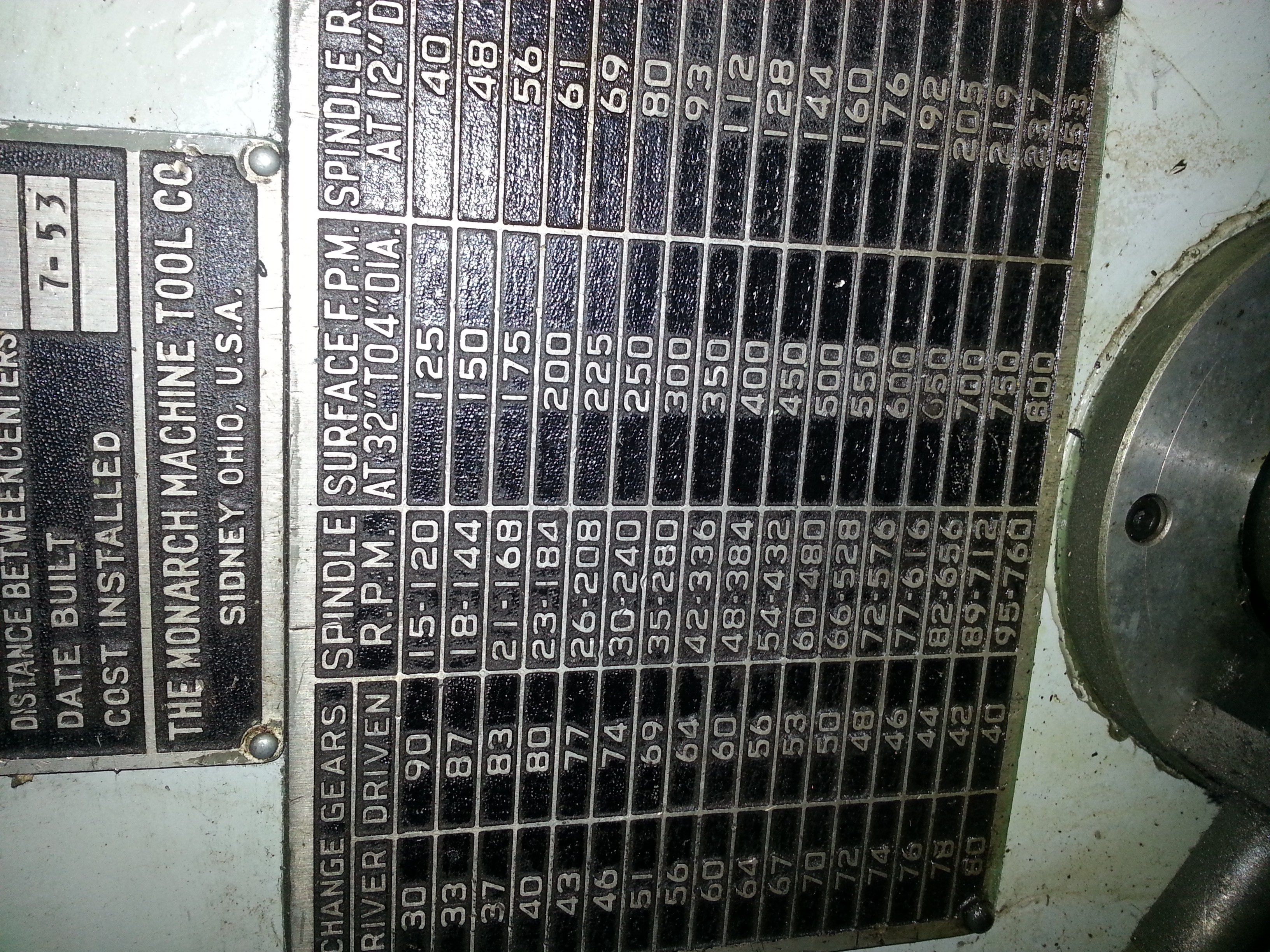 - If you look at the dial for speeds, some of the RPM’s shown on the dial are covered by black tape, that’s because those gears aren’t installed for those RPM’s. So, they just covered them up.