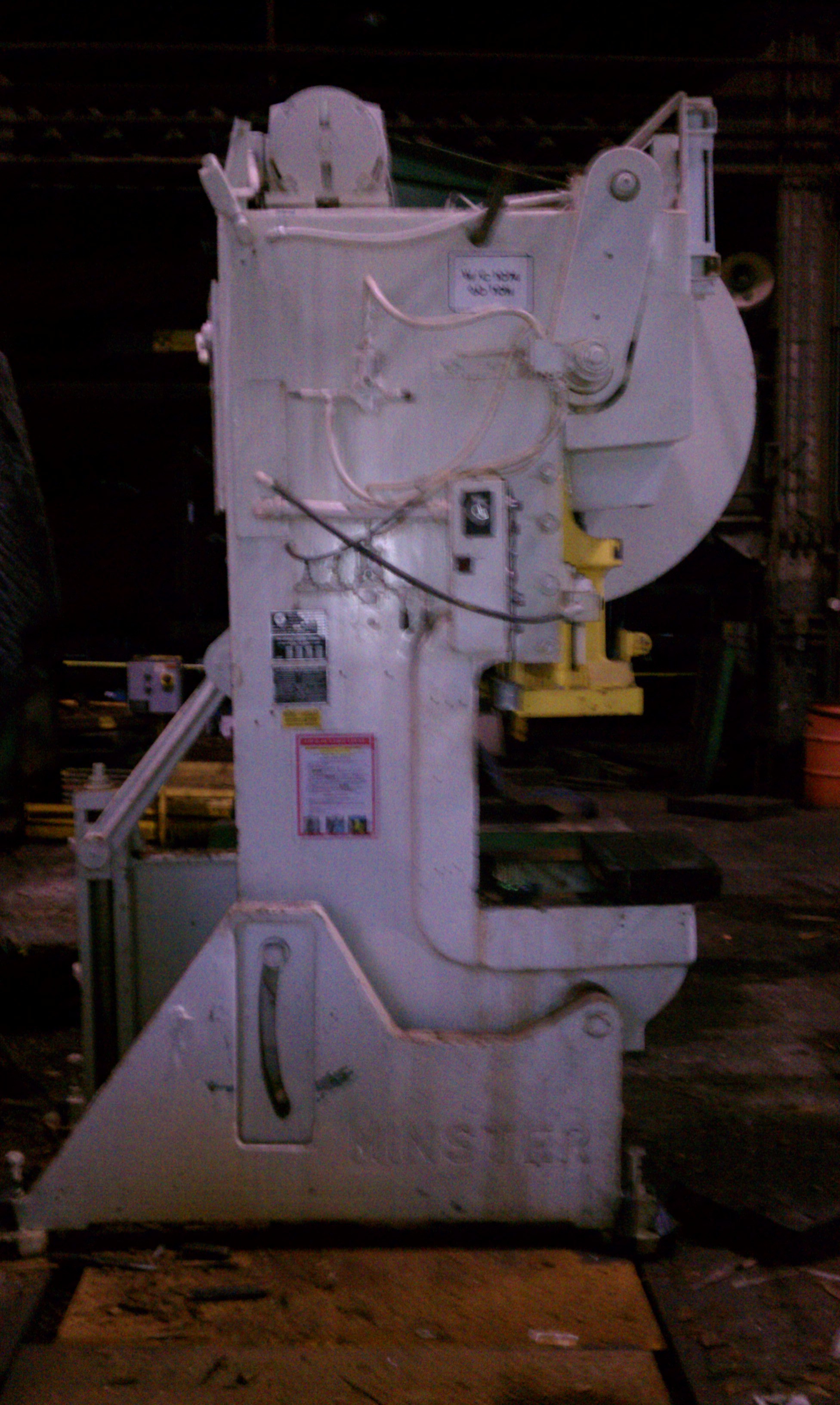 60 Ton Minster OBI Press For Sale Posted on by Dev 60 Ton Minster OBI Press For Sale Minster Fly Wheel Type OBI Press Serial Number 6F-18204 Model 6F Year 1968 Capacity 60 Tons Bed Area 32″ x 21″ Slide Area 21″ x 14″ Stroke 5″ Slide Adjustment 3″ Shut Height 15″ Speed 90 SPM Missing Bolster Plate Share Post Tweet Share this:Click to share on Twitter (Opens in new window)Click to share on Facebook (Opens in new window)Click to share on Google+ (Opens in new window) Related