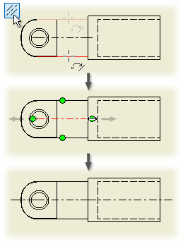 Drag the endpoint of an extension line for a centerline or center mark to lengthen or shorten it.