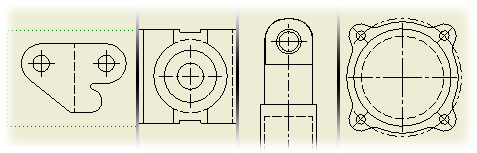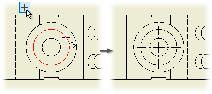 - Click the view that contains hidden centerlines and center marks.