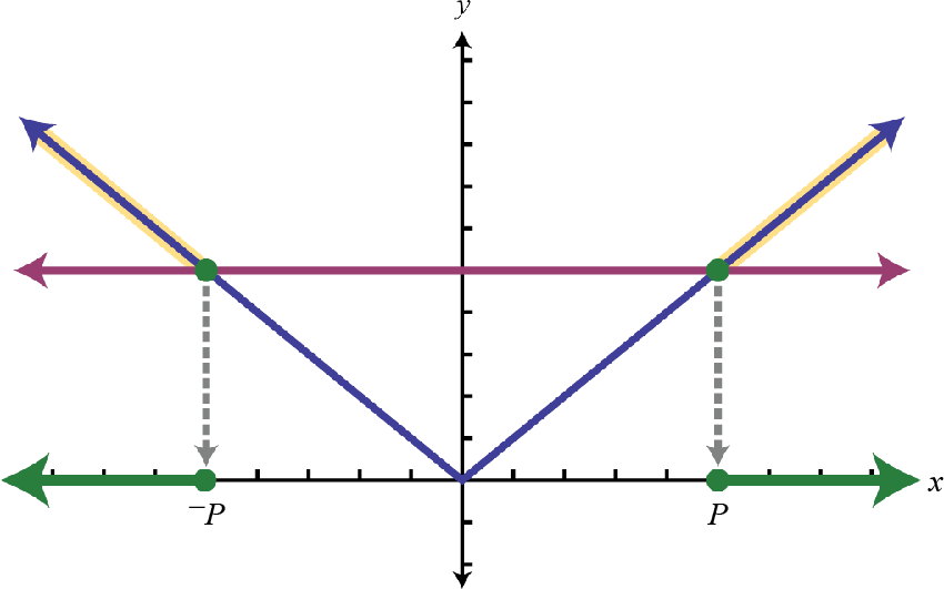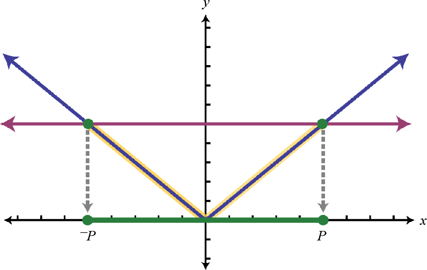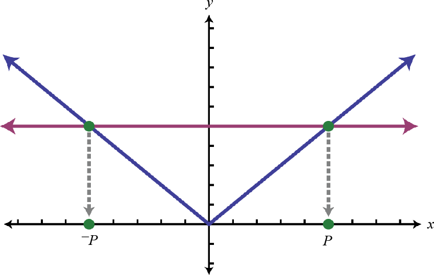 In other words, the argument of the absolute valueThe number or expression inside the absolute value. X can be either positive or negative p. Use this theorem to solve absolute value equations algebraically.