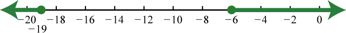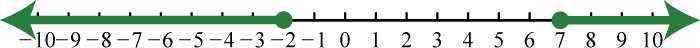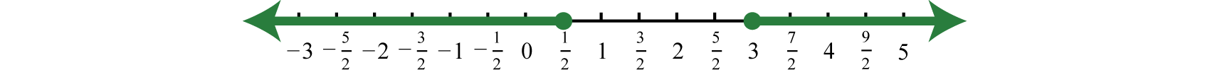 Shade the solutions on a number line and present the answer in interval notation. Here we use closed dots to indicate inclusive inequalities on the graph as follows:
