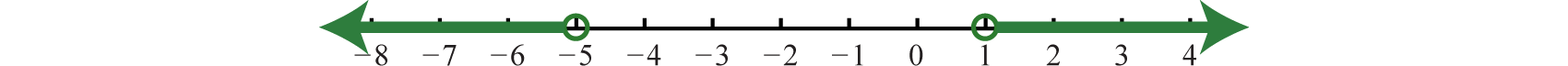The solution consists of all x-values where the graph of is above the graph of In this case, we can see that where the x-values are less than −5 or are greater than 1. To apply the theorem we must first isolate the absolute value.