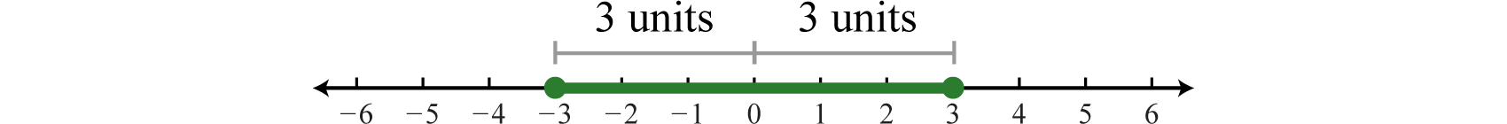 Recall that the absolute valueThe distance from the graph of a number a to zero on a number line, denoted of a real number a, denoted , is defined as the distance between zero (the origin) and the graph of that real number on the number line. For example, and