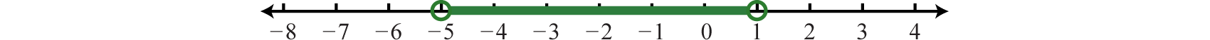 The solution consists of all x-values where the graph of is below the graph of In this case, we can see that where the x-values are between −5 and 1. To apply the theorem, we must first isolate the absolute value.