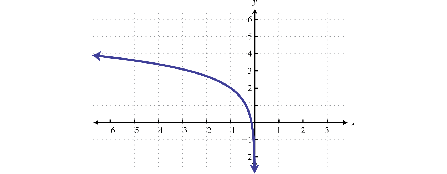 Note: Finding the intercepts of the graph in the previous example is left for a later section in this chapter. For now, we are more concerned with the general shape of logarithmic functions.