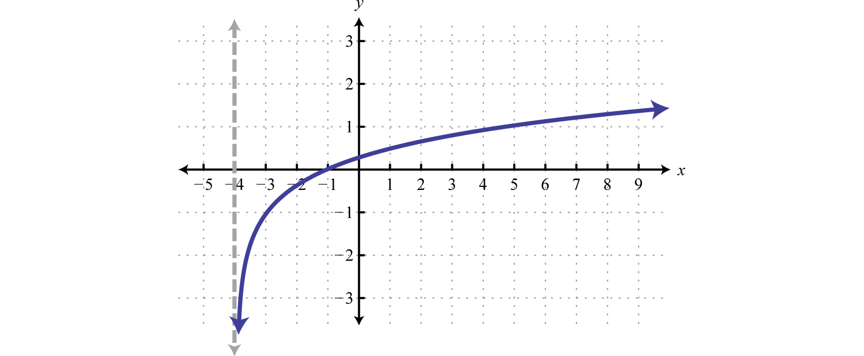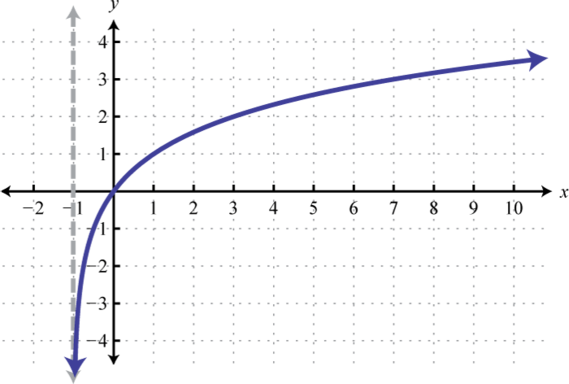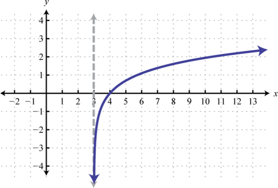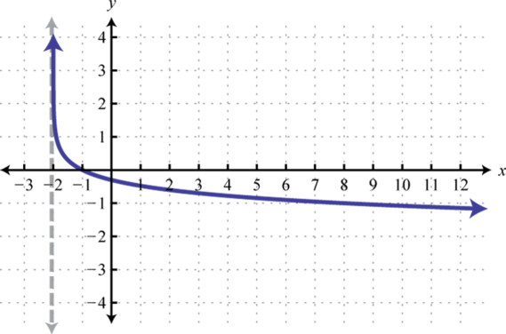 Notice that the asymptote was shifted 4 units to the left as well. This defines the lower bound of the domain. The final graph is presented without the intermediate steps.