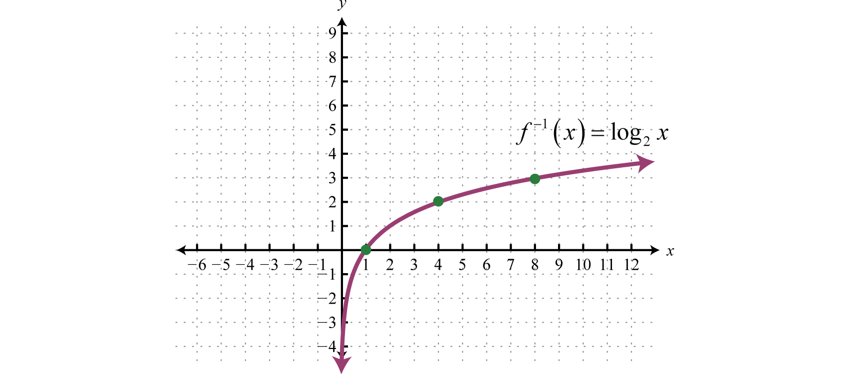 We quickly realize that there is no method for solving for y. This function seems to “transcend” algebra. Therefore, we define the inverse to be the base-2 logarithm, denoted The following are equivalent: