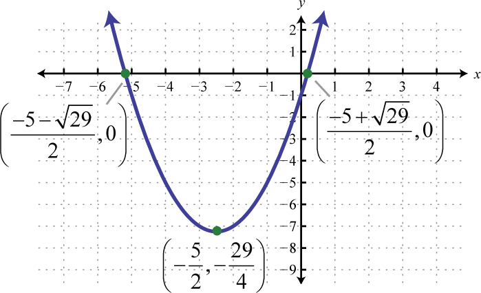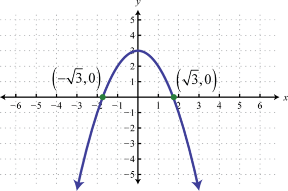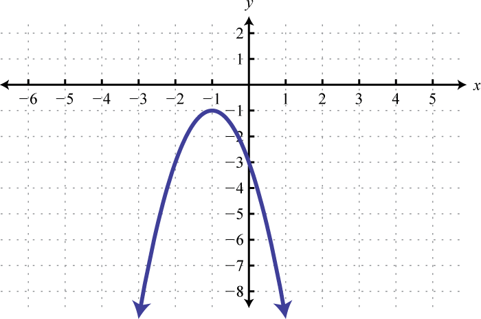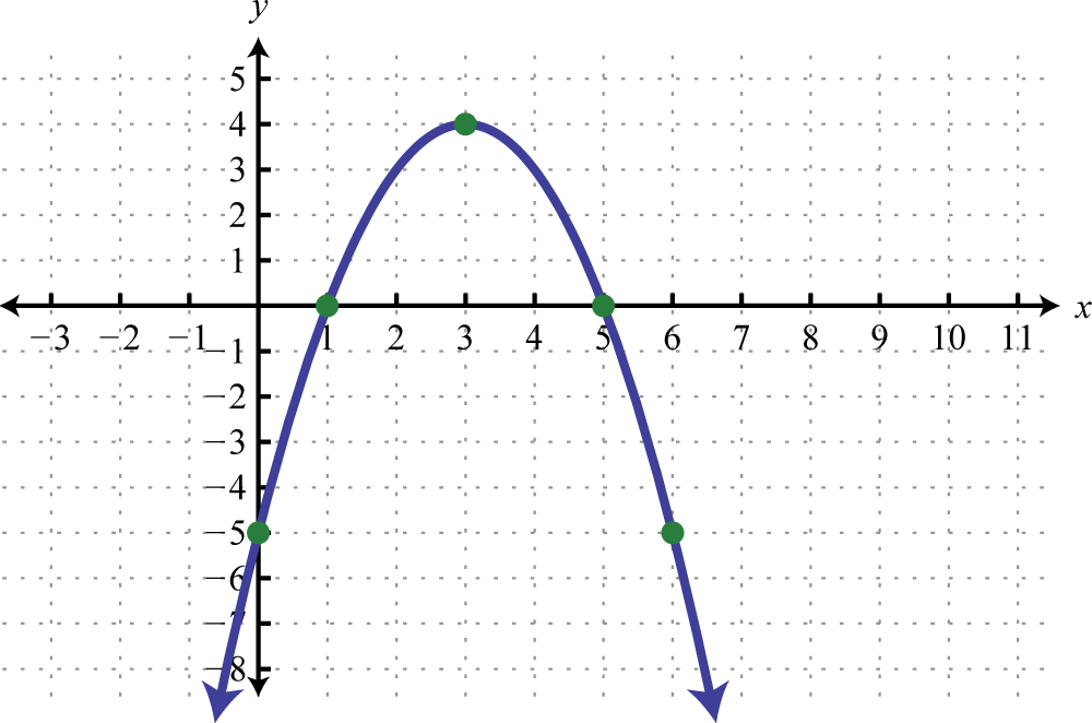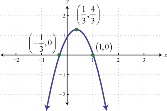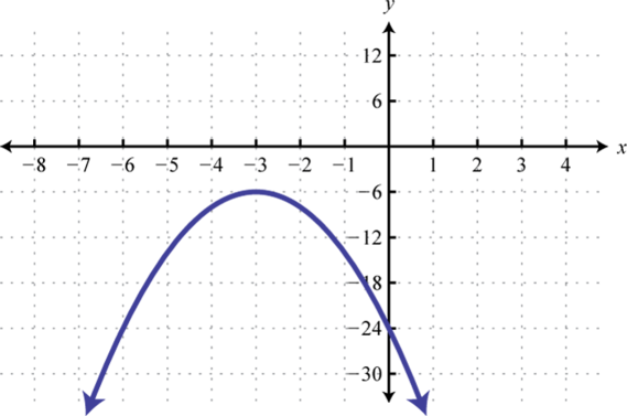 Recall that if the leading coefficient the parabola opens upward and if the parabola opens downward. In this case, and we conclude the parabola opens downward. Use general form to determine the y-intercept. When we can see that the y-intercept is From the equation in standard form, we can see that the vertex is To find the x-intercept we could use either form. In this case, we will use standard form to determine the x-values where ,