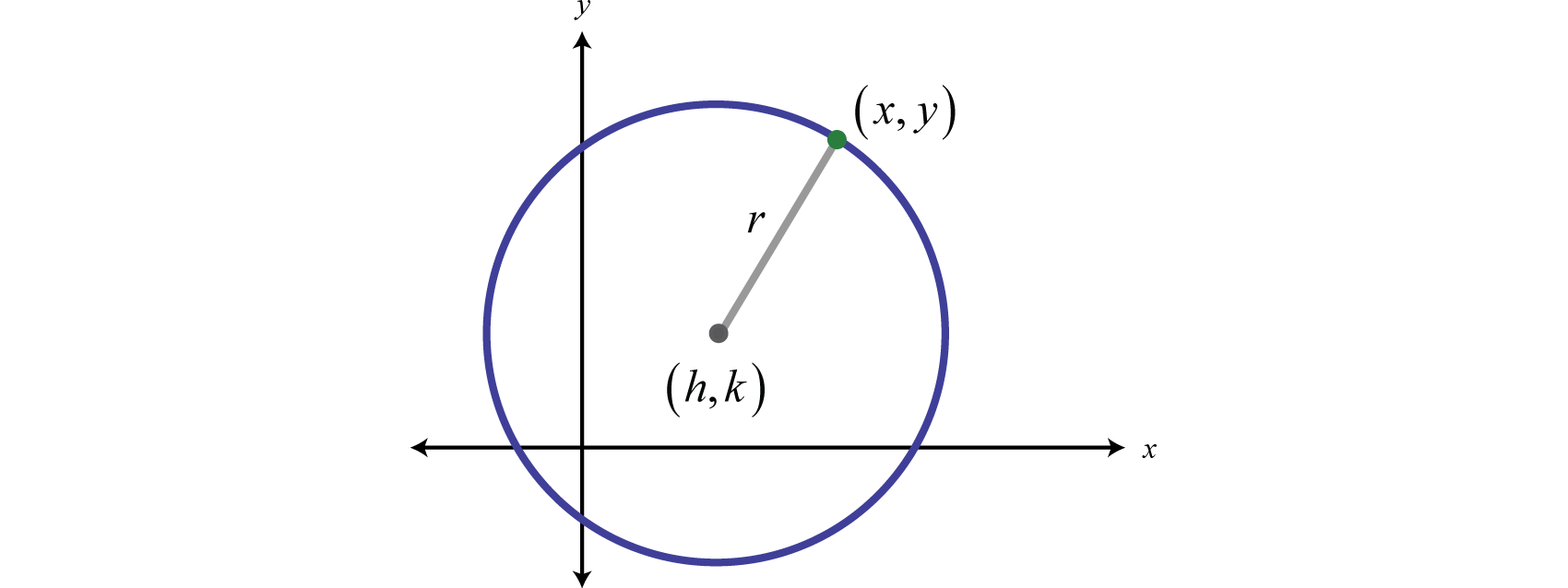 Squaring both sides leads us to the equation of a circle in standard formThe equation of a circle written in the form where is the center and r is the radius.,