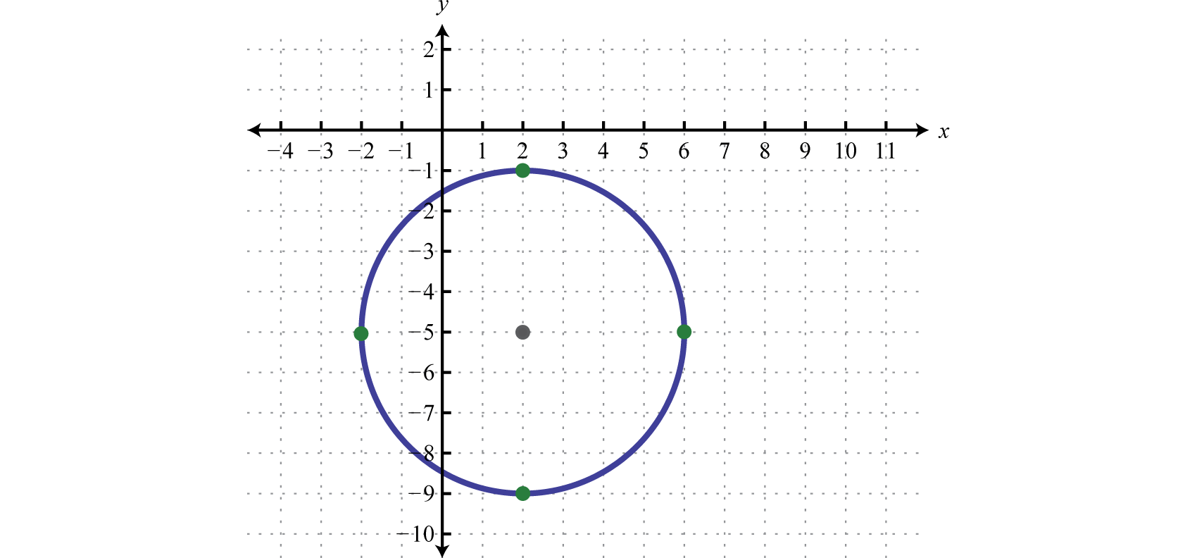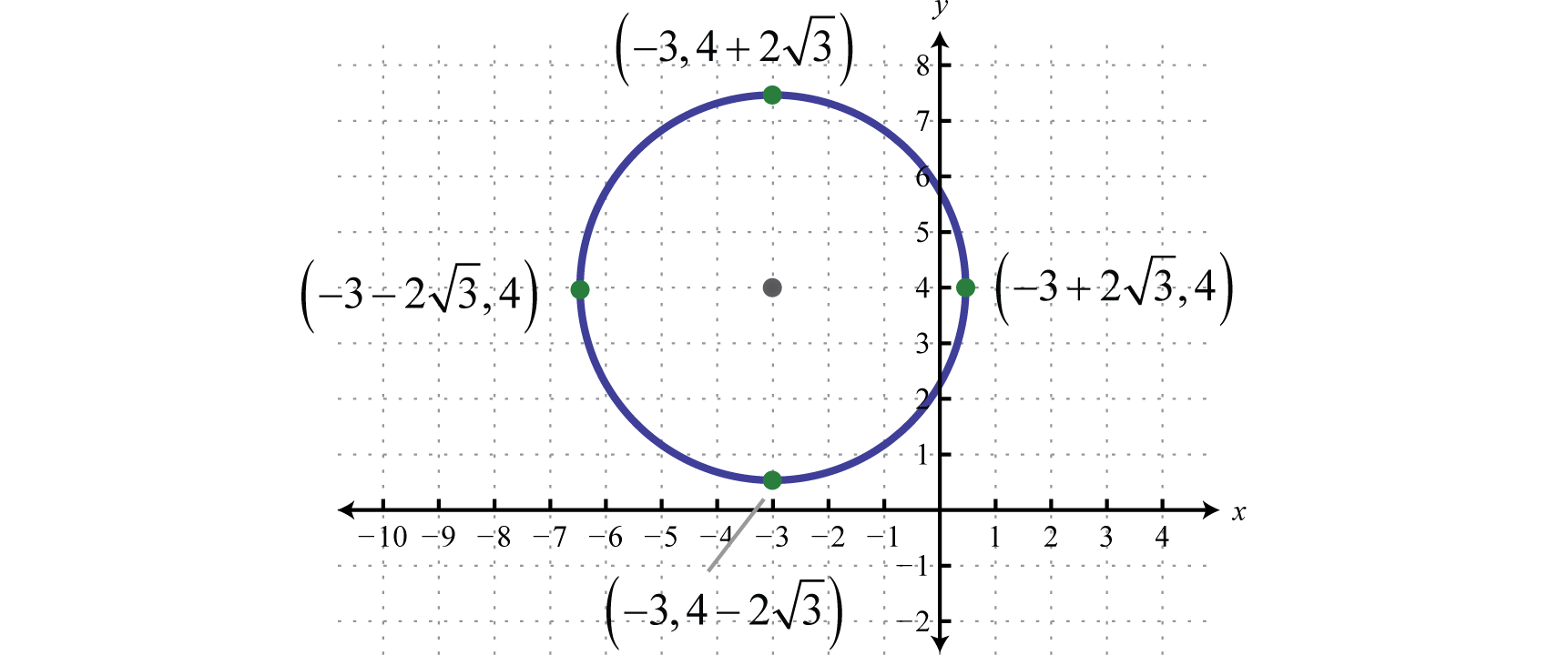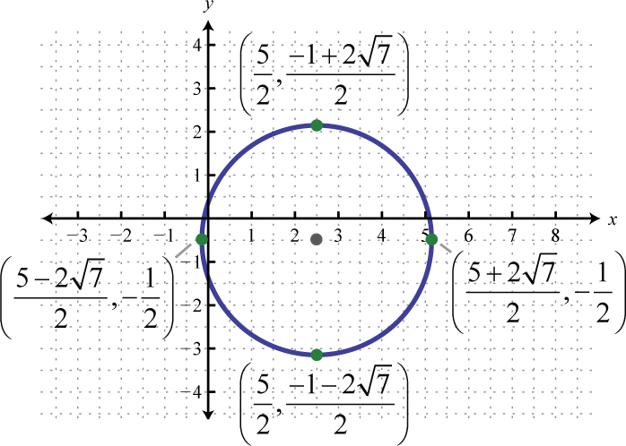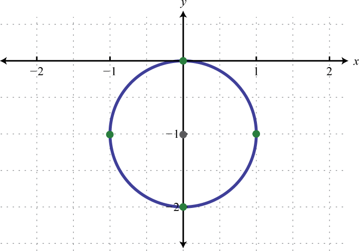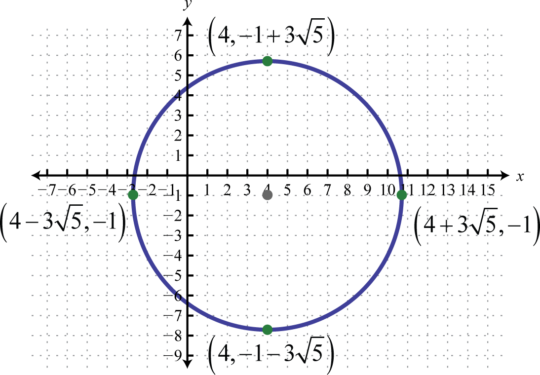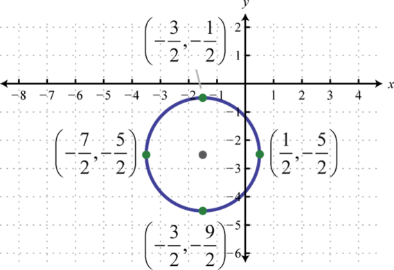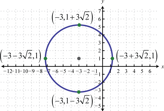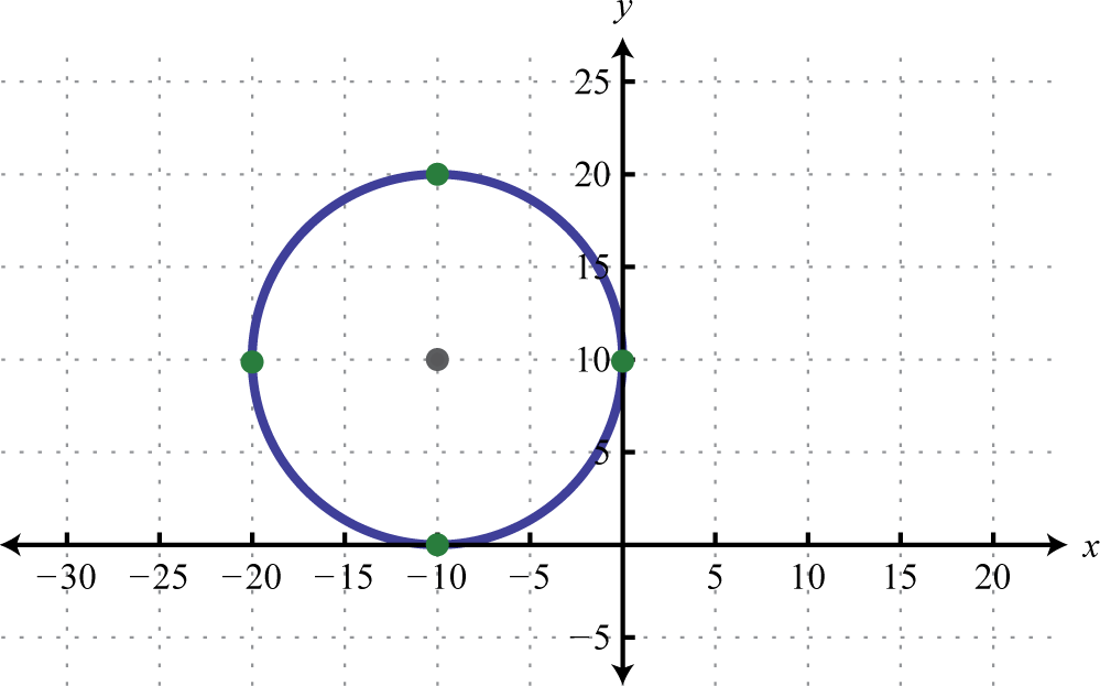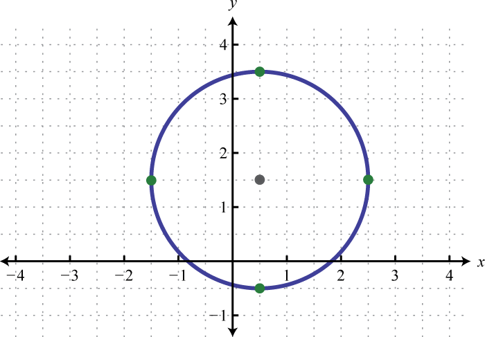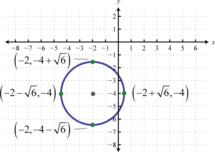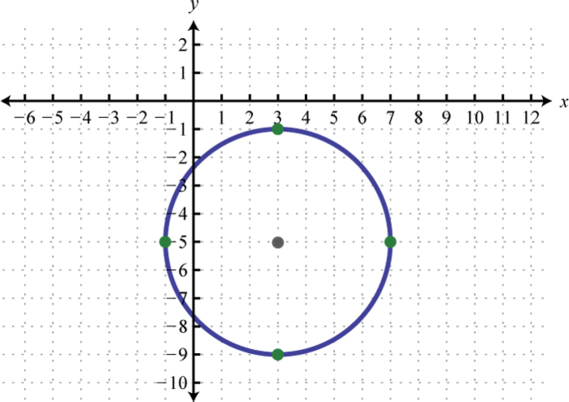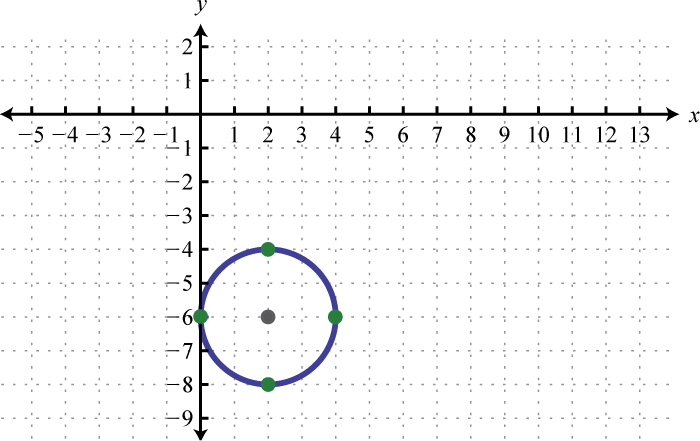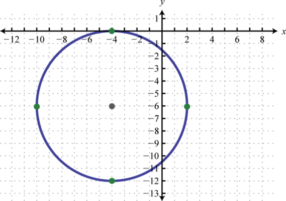 Written in this form we can see that the center is and that the radius units. From the center mark points 4 units up and down as well as 4 units left and right.