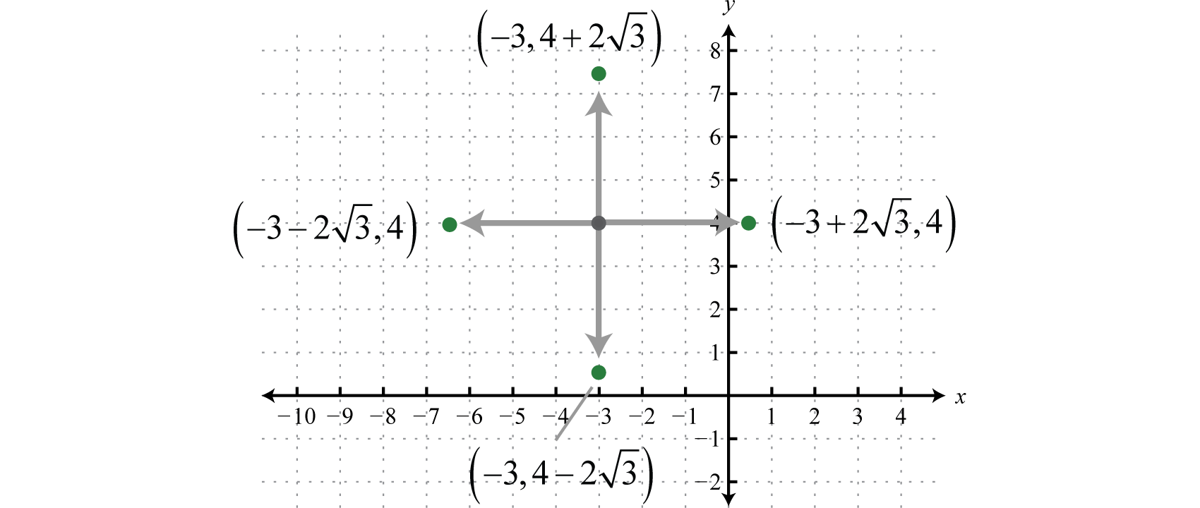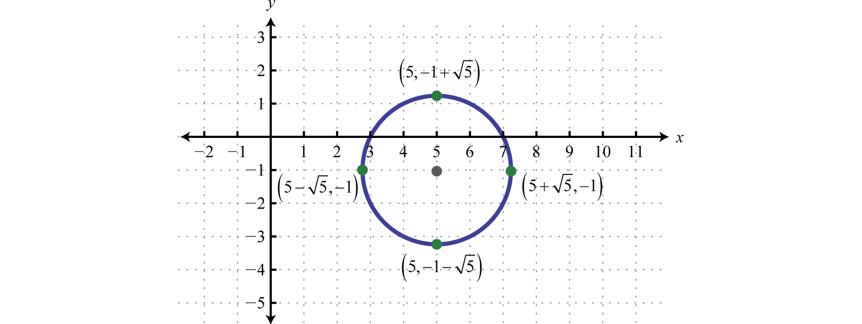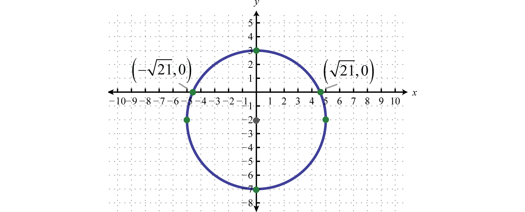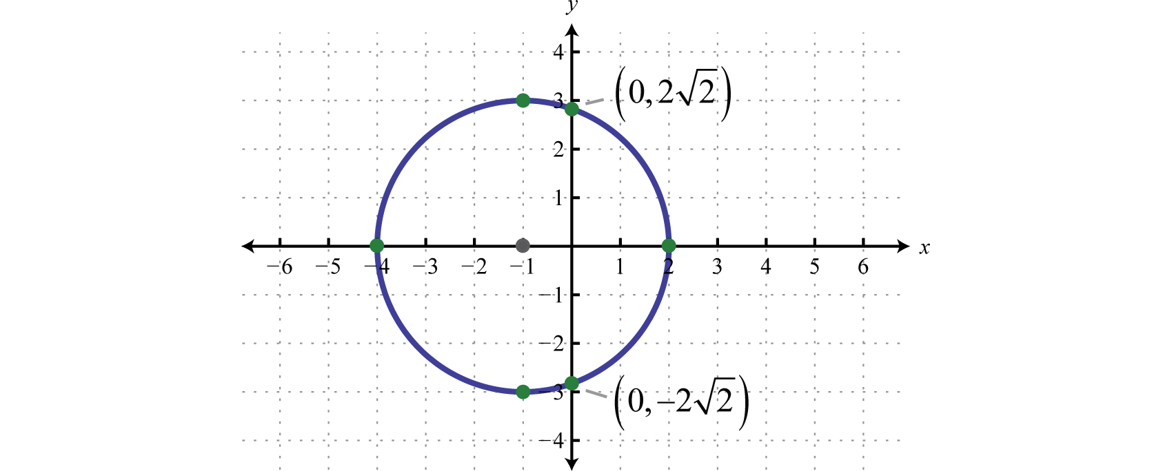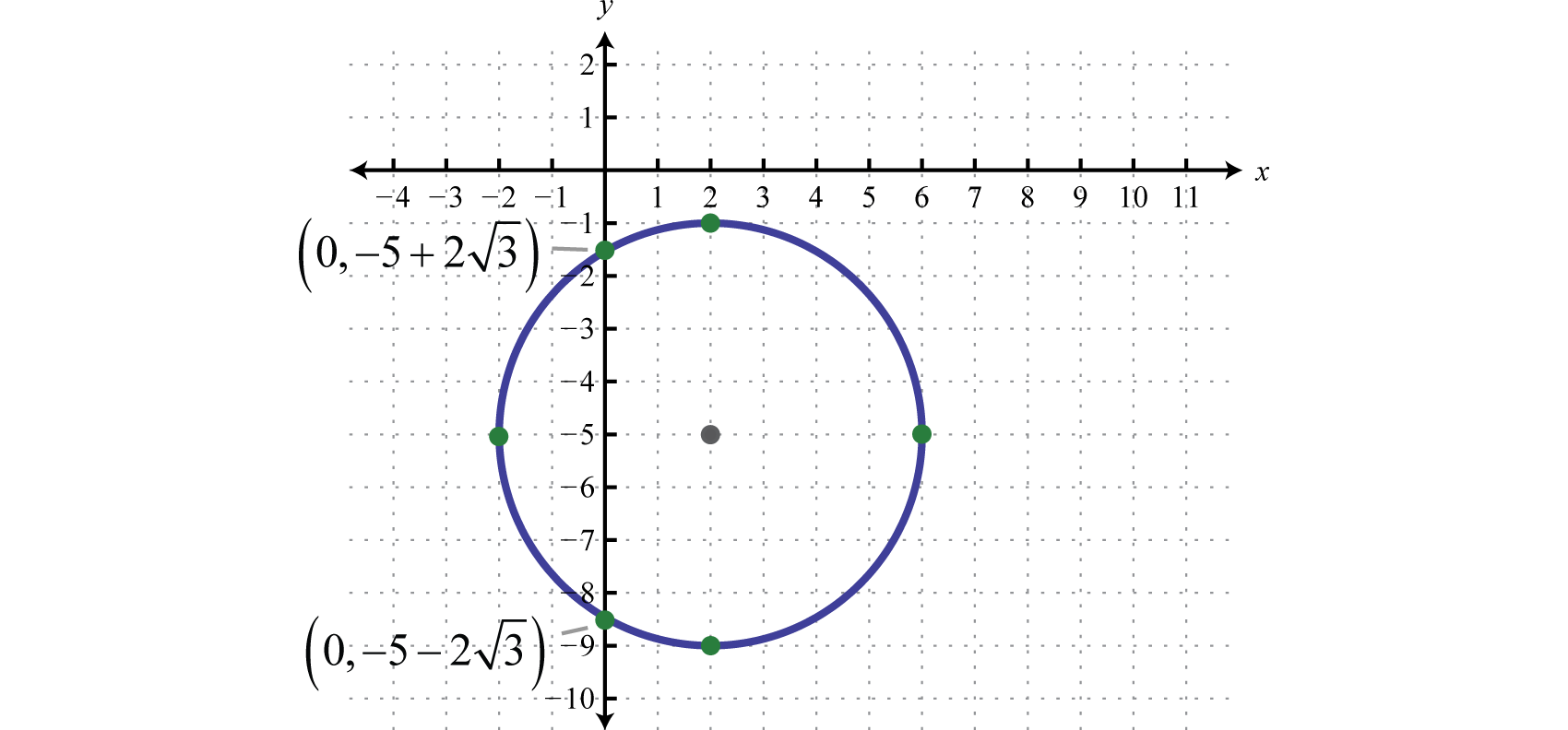 Written in this form we can see that the center is and that the radius units. From the center mark points 4 units up and down as well as 4 units left and right.