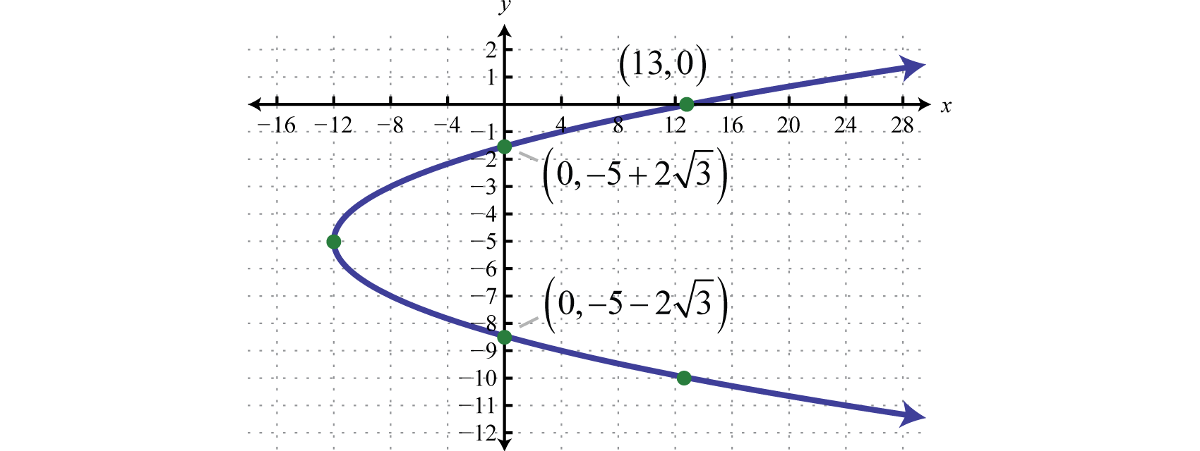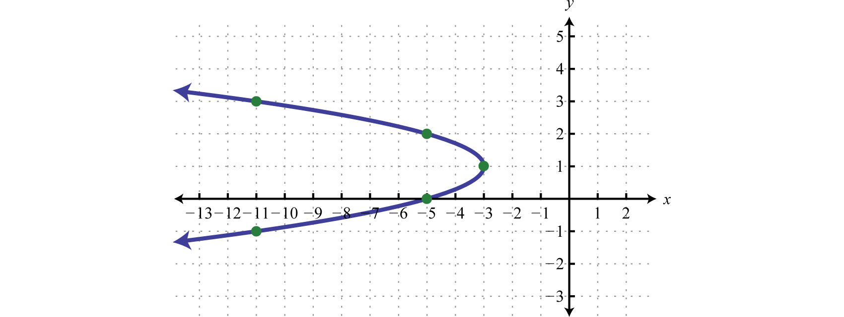 So far we have been sketching parabolas that open upward or downward because these graphs represent functions. At this point we extend our study to include parabolas that open right or left. If we take the equation that defines the parabola in the previous example,