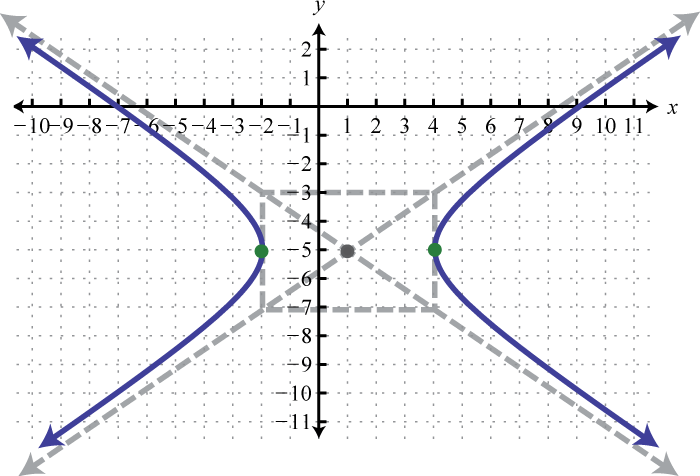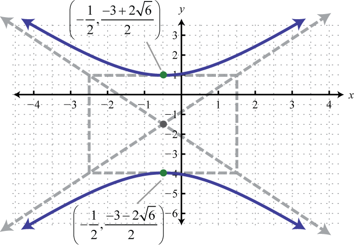 Make up your own equation of a hyperbola, write it in general form, and graph it.
