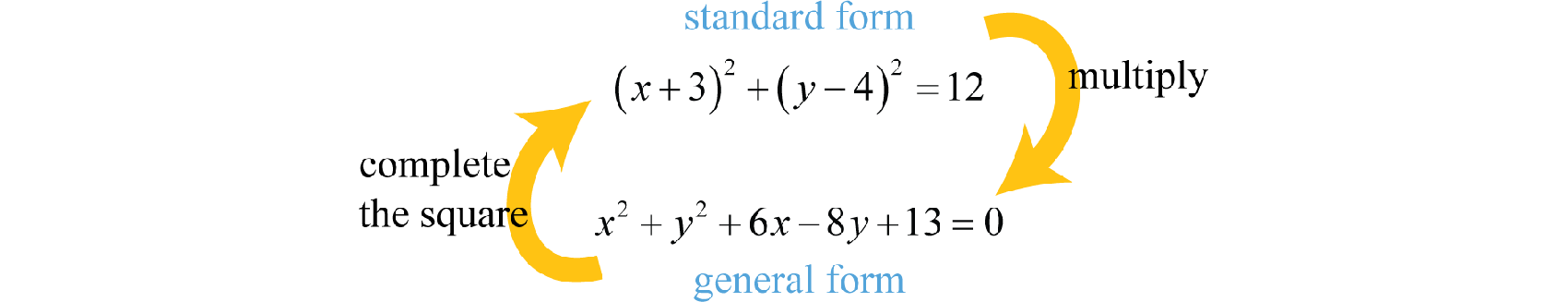 Written in this form we can see that the vertex is However, the equation is typically not given in standard form. Transforming general form to standard form, by completing the square, is the main process by which we will sketch all of the conic sections.