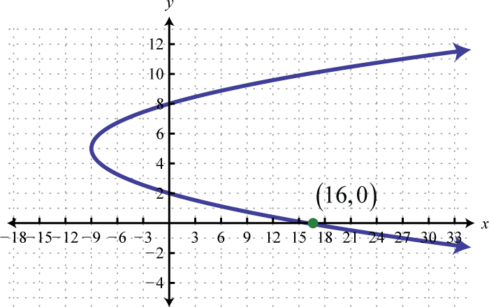 Note that the resulting graph is not a function. However, it does have the same general parabolic shape that opens left. We can recognize equations of parabolas that open left or right by noticing that they are quadratic in y instead of x. Graphing parabolas that open left or right is similar to graphing parabolas that open upward and downward. In general, we have