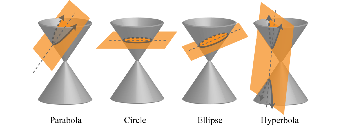 A conic sectionA curve obtained from the intersection of a right circular cone and a plane. is a curve obtained from the intersection of a right circular cone and a plane. The conic sections are the parabola, circle, ellipse, and hyperbola.